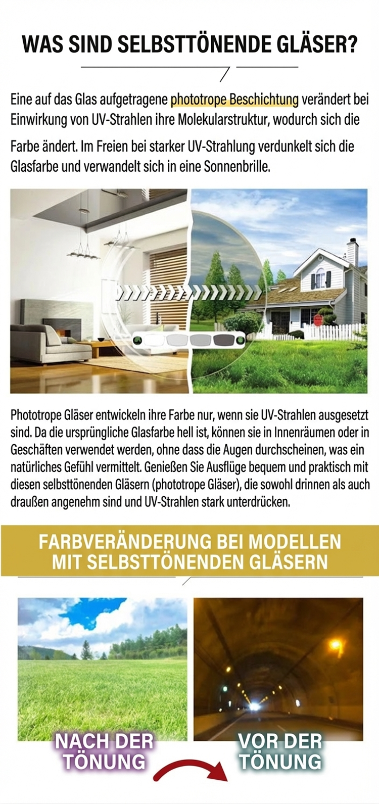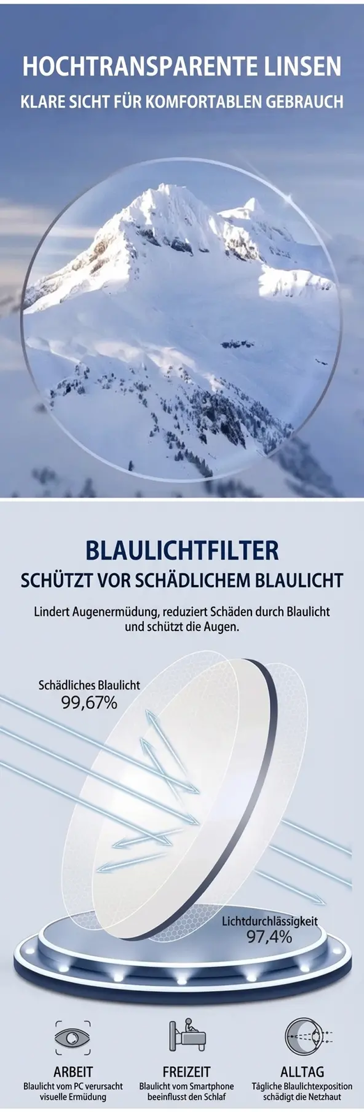 Blaulichtfilternde, selbsttönende Lesebrille